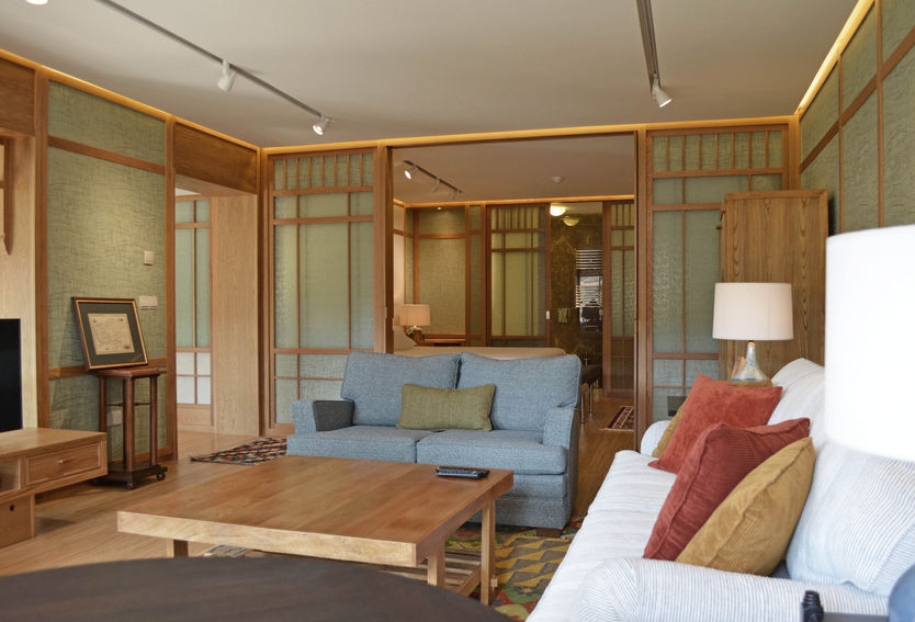 To enhance the visual appeal and warmth of the interiors, a combination of locally sourced wood and wallpaper has been carefully selected. These materials serve not only to soften the overall aesthetic but also to manipulate the proportions of the spaces, making them feel more intimate and cosy. The use of these elements contributes to a serene and balanced atmosphere that complements the minimalist, Japanese-inspired design ethos.