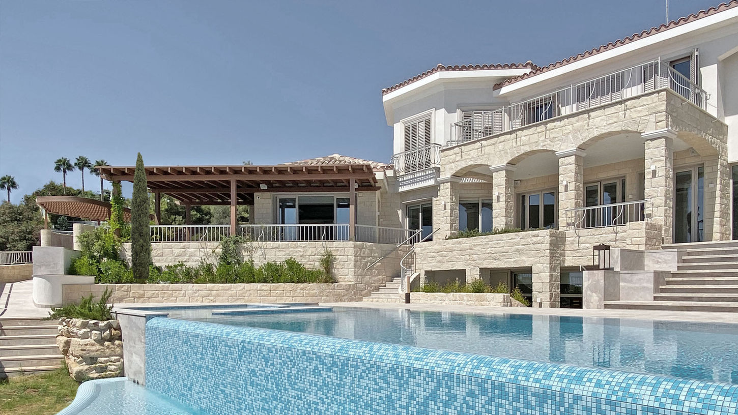 This family villa is quietly situated on the foothills of Limassol, perched on a prominent mountain ridge that offers sweeping views down a green valley and towards the distant sea. Designed with sensitivity to its setting, the plan is composed of interlocking forms arranged around a central octagonal space. This configuration reflects both the natural contours of the site and the practical requirements of the client’s brief, resulting in a layout that feels both intuitive and grounded.