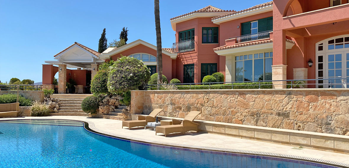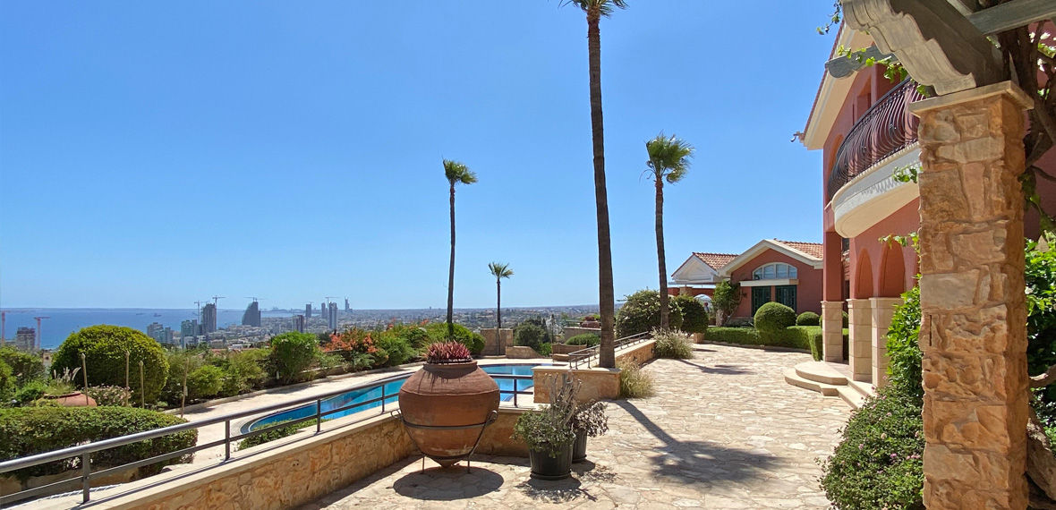 This villa, set atop a gentle hill in a quiet residential area of Limassol, has been thoughtfully designed to harmonize with its surroundings while maximizing the stunning panoramic sea views available from its elevated position.