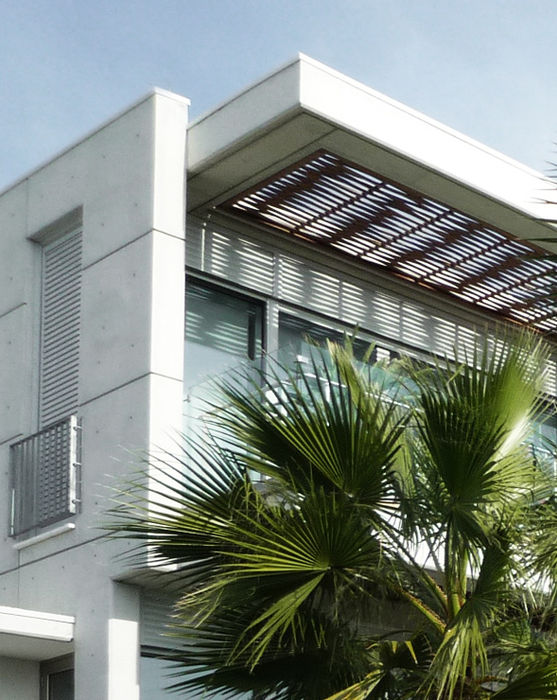 This house is designed to accommodate a young family of four and is situated at the quiet end of a cul-de-sac in a newly developed area of Limassol. The design carefully considers the site’s south-facing orientation to make the most of natural light and unobstructed views of the sea, while responding thoughtfully to the local climate.